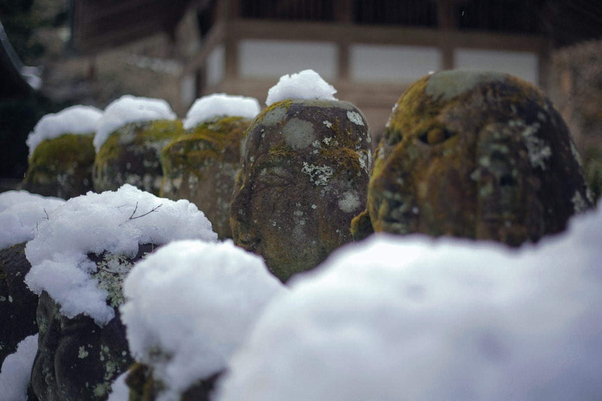 - ↑Rare snowfall transforms the temple gardens into something almost never photographed